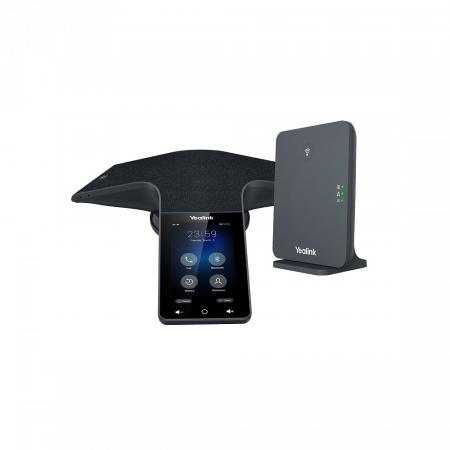 Yealink CP935W-Base — это беспроводной сенсорный конференц-телефон корпоративного уровня для конференц-залов малого и среднего размера. Отличительной особенностью устройства является возможность подключения как по стандарту DECT к базовой станции Yealink W70B (входит в комплектацию) с расширением дальности действия до 50 м и сохранения стабильности сигнала, так и регистрация SIP-аккаунта непосредственно через Wi-Fi.