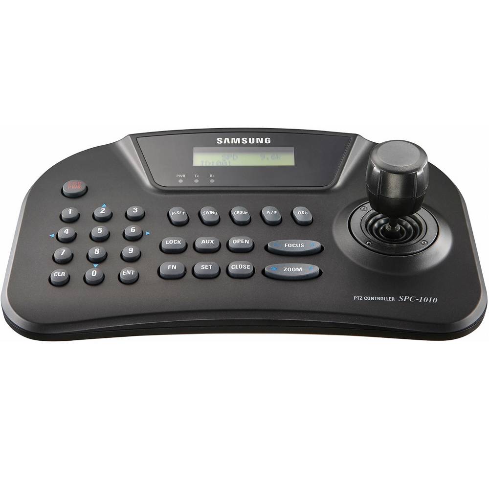 Клавиатура с джойстиком для управления до 255 PTZ камер, RS-485/422 (расстояние до 1км), Samsung-T/E, Pelco-D/P, Panasonic, Vicon, AD, Honeywell, 12V DC, 140мA, 9V DC аккумулятор, 0°C ~ 45°C, 280 x 100 x 180мм, 0.7кг
