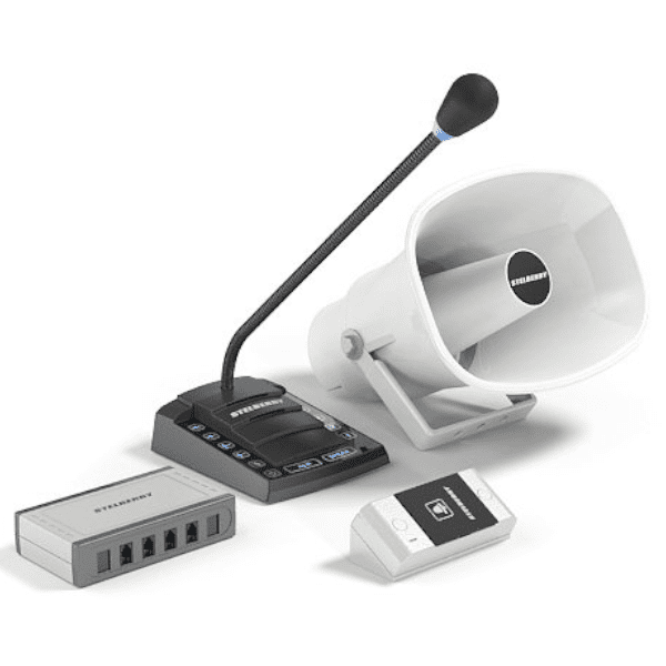 Многоканальное переговорное устройство для АЗС STELBERRY S-645 — комплект многофункционального оборудования, позволяющий вести диалог с клиентами через канал «клиент-кассир» — панель S-120 (в комплекте) и с заправщиками, водителями, сотрудниками АЗС или КПП через 4 добавочных абонентских канала — 4 панели S-120 (приобретаются отдельно), устанавливаемые на воротах, топливораздаточных колонках . Для передачи аудиосигнала между оператором и абонентами служит 4-канальный коммутатор, оснащенный выходами для подключения к пульту кассира и панели клиента, к блоку питания, интерфейсами для подключения до четырех абонентских панелей.