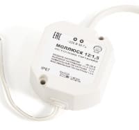 «Моллюск» 12/1.5 оснащен светодиодным индикатором питания, короткими шнурами для соединения (сварка, опрессовка, винтовые или болтовые зажимы, пайка) с кабелями питания. Предусмотрена установка на саморезы (два отверстия под метизы). Размер — 50×50×25 мм. Вес — 90 г.