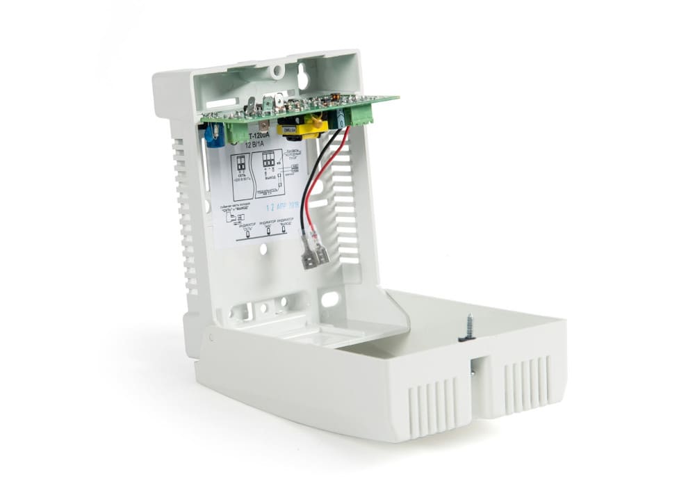 «Скат-1200А» рассчитан на работу в режиме 24/7, соответствует ГОСТ Р53325-2012. Корпус источника (запатентованная конструкция) — пластиковый, перфорированный, с полостью под АКБ, с креплениями под установку на стену. Рабочие температуры — –10 ºС… +40 ºС. Защита от пыли и влаги — IP20. Размер — 130×170×85 мм, вес — 300 г (без АКБ). В комплект входят два разъемных клеммника.