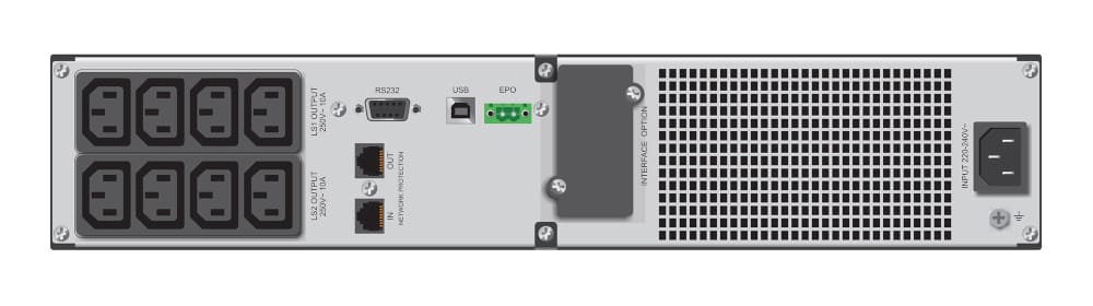 Источники резервного питания — четыре герметичные свинцово-кислотные батареи 12 В емкостью 9 А·ч. Обычная продолжительность переключения между режимами — 2 ~ 6 мс., максимальная в линейном режиме — 10 мс., в генераторном режиме — 13 мс.
