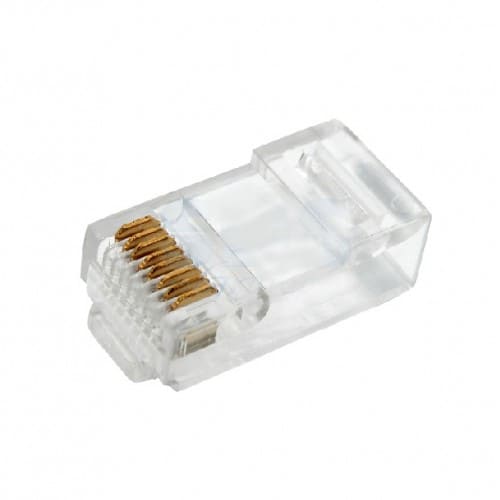 Неэкранированный коннектор PROconnect 05-1021-3 для размещения на концах компьютерных кабелей изготовлен из прозрачного пластика. Выполнен с восемью посадочными местами и восемью контактами, покрытыми золотым напылением для защиты от окисления и лучшего электроконтакта с жилами кабеля. Поддерживает технологию РоЕ и стандарты IEEE 802.3af-2003, IEEE 802.3at-2009.