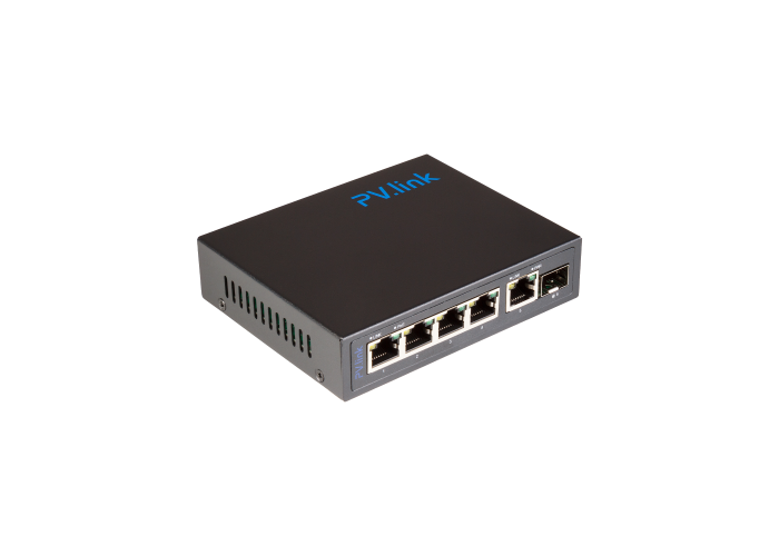 Данный коммутатор от компании PV-link представляет собой высокопроизводительное устройство, предназначенное для объединения потоков данных и обеспечения электропитания сетевым IP-устройствам. Модель PV-GPOE04G1S1 оснащена шестью портами: четырьмя портами с поддержкой PoE (Power over Ethernet) и двумя uplink портами RJ45 и SFP.