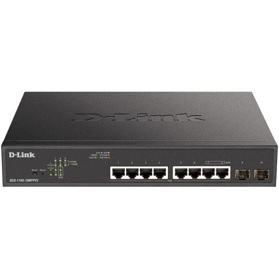 Данный управляемый коммутатор серии EasySmart DGS-1100-10MPPV2, оснащенный восемью портами 10/100/1000Base-T с поддержкой PoE и двумя портами 1000Base-X SFP, предназначен для использования в сетях малого и среднего бизнеса. Поддержка различных стандартов PoE и высокий бюджет мощности делают его оптимальным решением для организации систем видеонаблюдения.