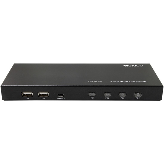 Данный KVM-переключатель (ORIGO OKVM410H/A1A) предназначен для управления четырьмя компьютерами с использованием одного монитора, клавиатуры и мыши.