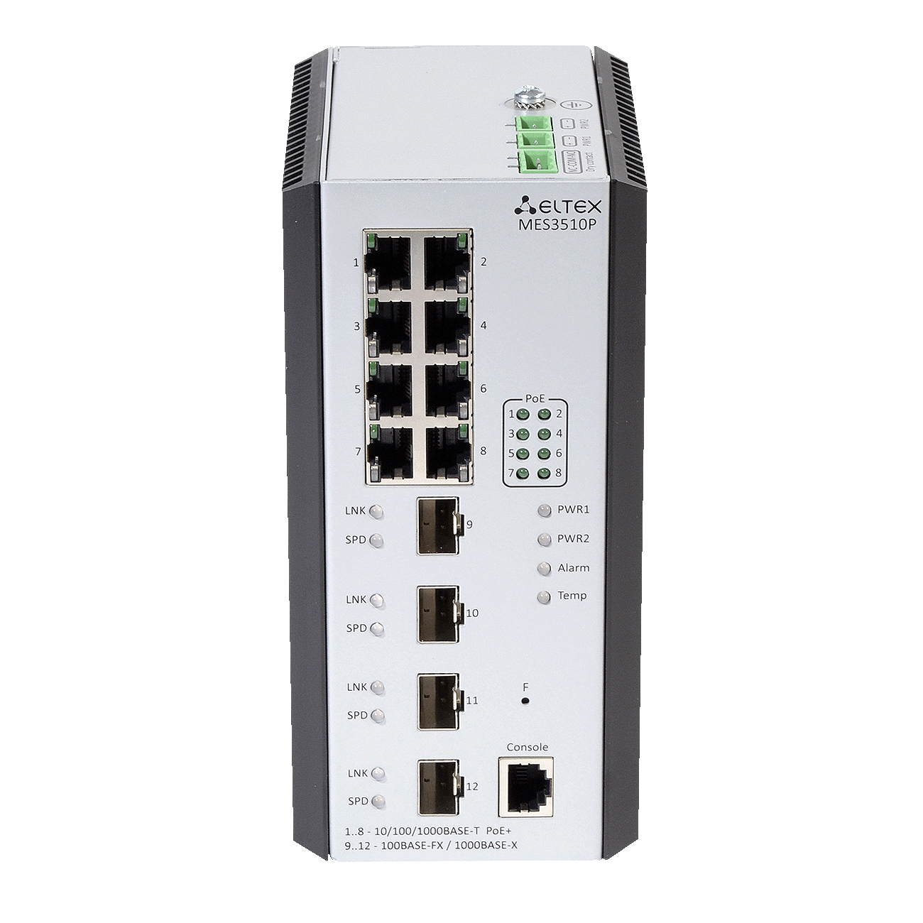 Промышленный коммутатор MES3510P предназначен для построения высоконадежных сетей передачи данных в условиях повышенных требований к защите от внешних воздействий. К таким воздействиям относятся перепады температур, механические нагрузки и вибрация.