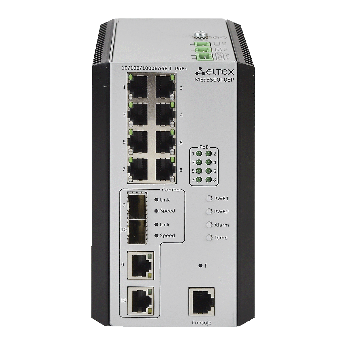Промышленные коммутаторы серии MES3500I-08P разработаны для построения надёжных и отказоустойчивых сетей передачи данных в промышленных условиях, где предъявляются повышенные требования к устойчивости к воздействию факторов окружающей среды, таких как перепады температур, механические воздействия и вибрации.
