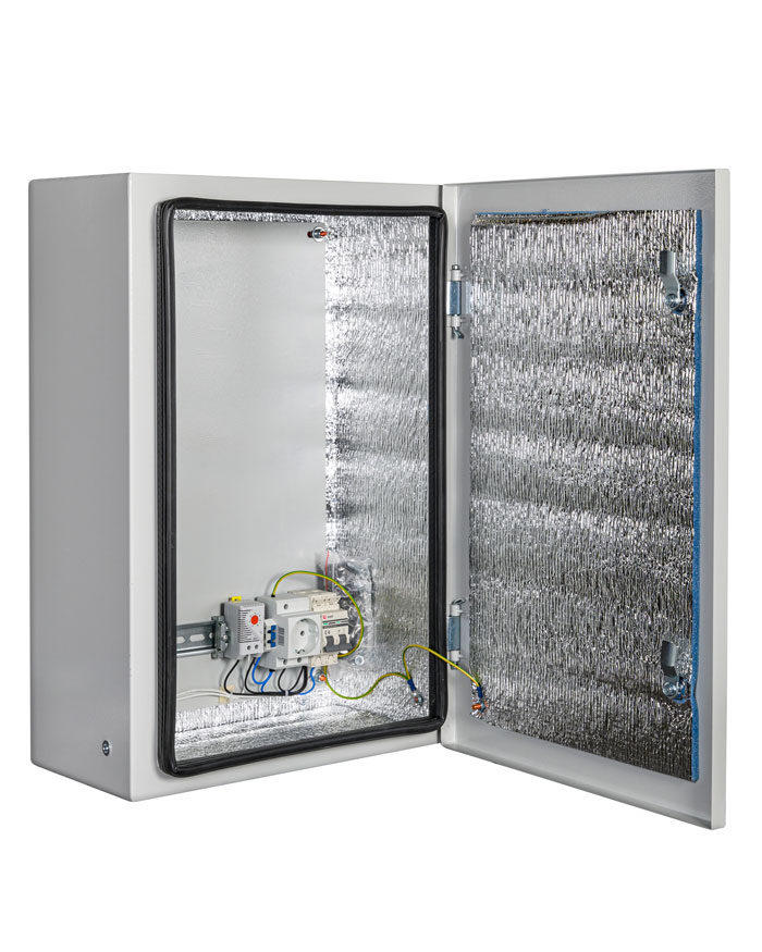Шкаф климатический навесной с монтажной платой; 2 гермоввода (MG-25); внутренние размеры 377х577х220 мм (ШхВхГ); IP66, t-раб.-55…+50°С, 400х600х250 мм (ШхВхГ), 12.3 кг. Цвет серый. Комплектация: утеплитель из порилекса, замок 2 шт, ключ 1 шт, розетка 1 шт, автоматический выключатель, 6А 1 шт, клемма для подключения оборудования 2 шт, клемма заземления 1 шт, термореле 1 шт, нагреватель мощностью 100 Вт 1 шт.
