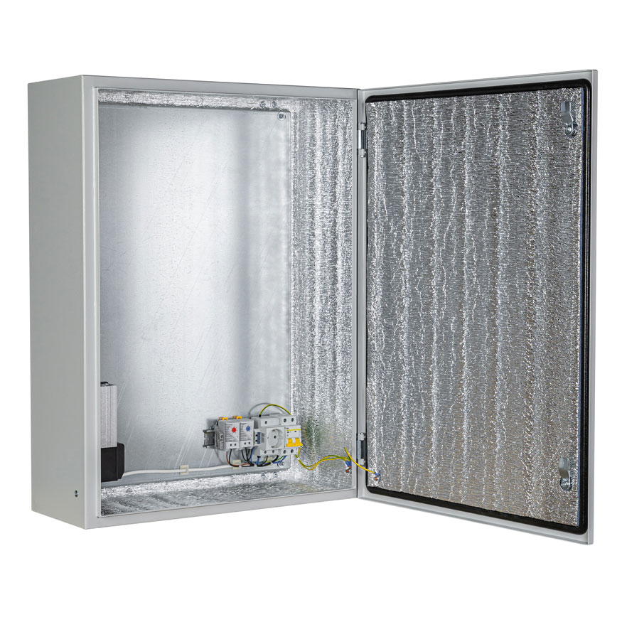 Данный шкаф изготовлен из стали и обладает степенью защиты IP66, что гарантирует его надежную работу в условиях улицы. Шкаф оснащен функцией предпуска и обогревом, обеспечивающими оптимальные условия для размещения оборудования. Цвет шкафа – серый.