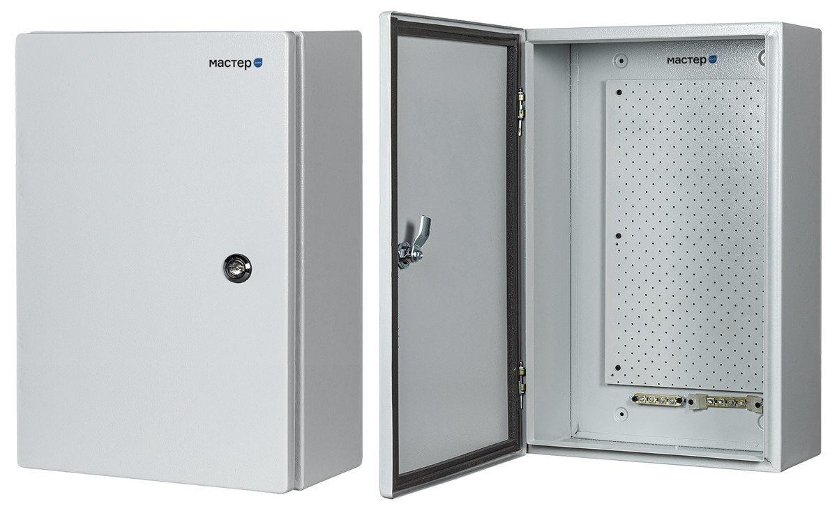 Корпус металлический уличный с монтажной платой; IP54, 560х370х180 мм. В комплекте: замок, ключ, 2 клеммные рейки, уплотнительная прокладка, 2 гермоввода.