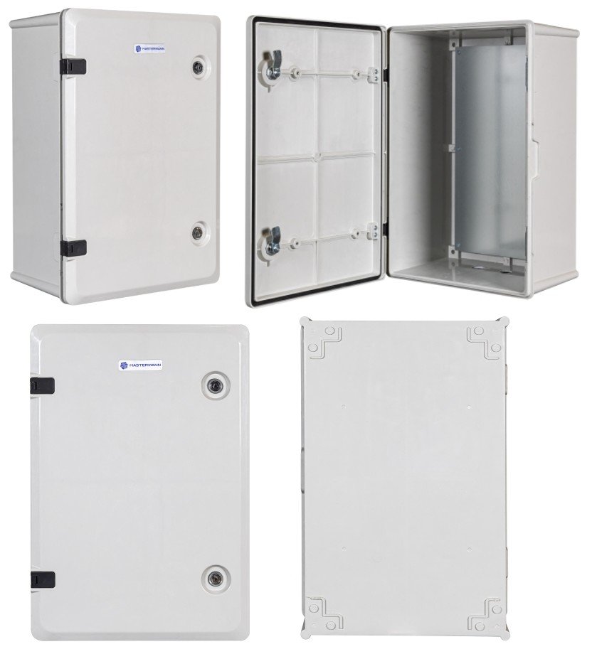 Шкаф монтажный композитный с монтажной платой и двумя замками; радиопрозрачный корпус; два гермоввода (MG-25); IP66, t-раб.-60…+80°С, 360×560×250 мм (Ш×В×Г), 7.4 кг.