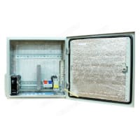 * Конвективный обогреватель с вентилятором, установленный на DIN-рейку. Обогреватель оснащен термостатом (нормально открытый, срабатывает до +15 ºС) и слоем теплоизоляции для поддержания внутренней температуры выше 0 ºС.