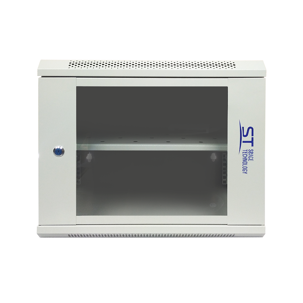 ST-NC9U01 (СЕРЫЙ) С ПОЛКОЙ, Шкаф предназначен для размещения разнообразной телекоммуникационной аппаратуры, и последующей ее коммутацией, Полка в комплекте,возможность крепления дверцы с двух сторон,съемные боковые панели (фиксируются защелкой), Тип монтажа: Настенный/напольный, Конструкция: Сборно-разборная, модульная, Тип двери: Стеклянная с ударопрочным закаленным стеклом, Высота: 450 мм, Глубина: 400 мм, Ширина: 530 мм, Статическая нагрузка: 90 (стена), 300 (опоры) кг, Порошковая окраска, Цвет: Серый, IP20, Климатическое исполнение: УЗ, Кол-во дверей: 1