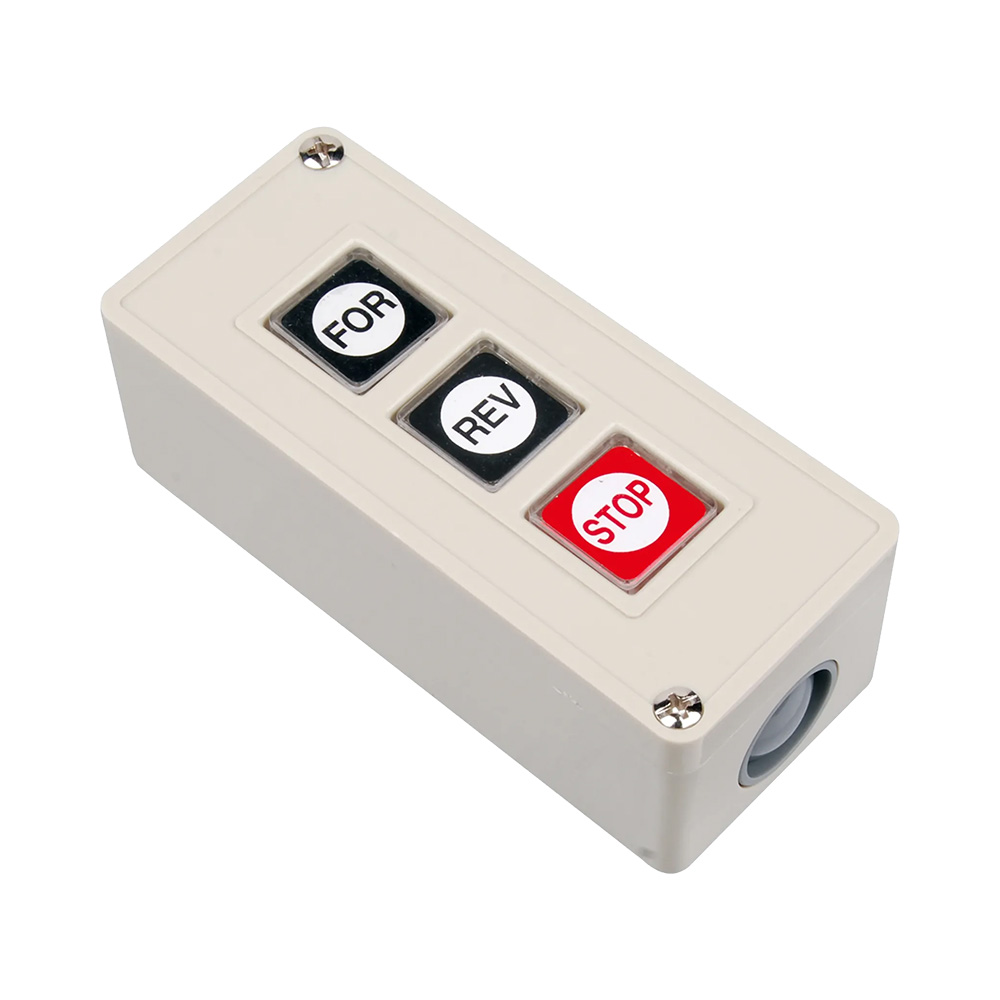 Панель для управления исполнительными механизмами путем коммутации соответствующих контактов с помощью трех кнопок без фиксации.