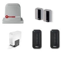Набор включает электромеханический привод RBS600HS, радиопульты MYGO4 с радиочастотой 433,92 МГц и кодировкой O-Code, синхронизируемые фотоэлементы EPMB, сигнальную лампу ELDC с антенною 12/24 В и комплект монтажных аксессуаров
