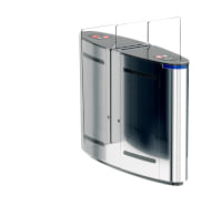 Тумба скоростного турникета Блокпост СКП 1200 с выдвигающимися влево и вправо створками шириной 350 мм поддерживает открытие прохода по сигналу пульта управления или по карте. В стандартную комплектацию входят два считывателя HID и EM-Marin. Ширина зоны прохода между двумя тумбами составляет 650 мм.