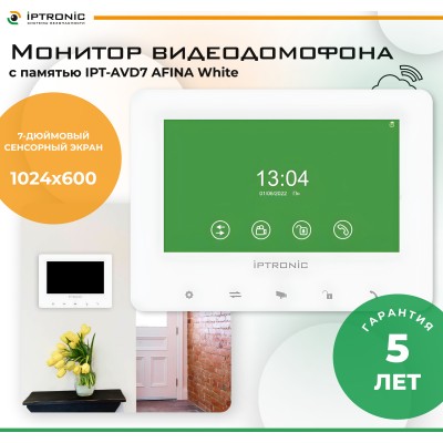 Внутренний 7-дюймовый AHD монитор белого цвета, с разрешение 1024х600 и возможностью подключение дополнительных вызывных панелей, мониторов, и видеокамер