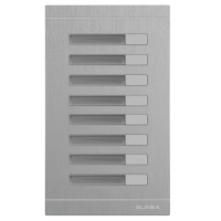 Модуль расширения Slinex MA-08 разработан с учетом установки на улице: корпус защищен от пыли и влаги согласно стандарту IP65, интервал рабочих температур — 40 ºС… +65 ºС. Оснащен восемью кнопками вызова и предназначен для увеличения количества абонентов вызывной панели MA-02 или MA-04 — до 16 дополнительных пользователей при двух подключенных модулях. Предусмотрена подсветка именных табличек абонентов. Монтаж — врезной. Питание — от вызывной панели. Размер — 110×185×34 мм. Поставляется с картами (8 шт.).