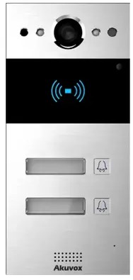 Малоабонентская IP вызывная панель Akuvox R20B X2 на 2 абонента, камера 2 Мп, шумоподавление, SIP, IP65, PoE питание, поддержка карт EM-Marin или Mifare