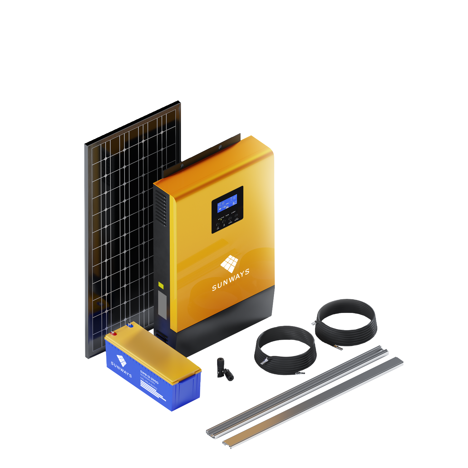 Комплект состоит из солнечного модуля FSM-100M, инвертора Cotek S300 12В, контроллера EPSolar LS1012E, АКБ OSB 72Ah AGM 12V, коннекторов солнечных модулей МС4.