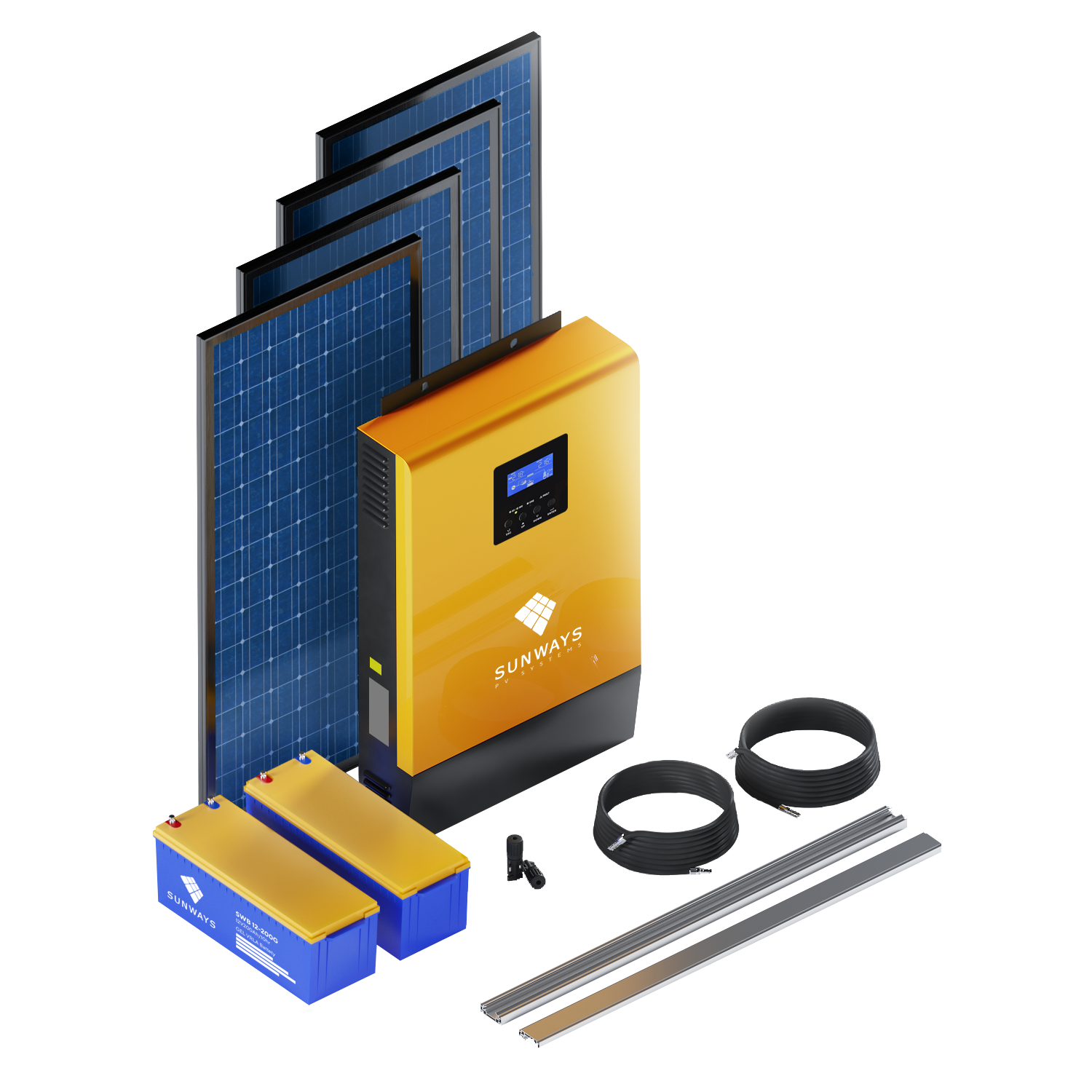 Постоянное напряжение 24 В преобразуется в переменное синусоидальное 220 В и частотой 50 Гц, с помощью инвертора Sunways UMX-NG Plus 2kVA 1500W 24V MPPT. Эти показатели аналогичны показателям в бытовой сети. За счет этого можно подключать технику, рассчитанную на питание от сети 220В.