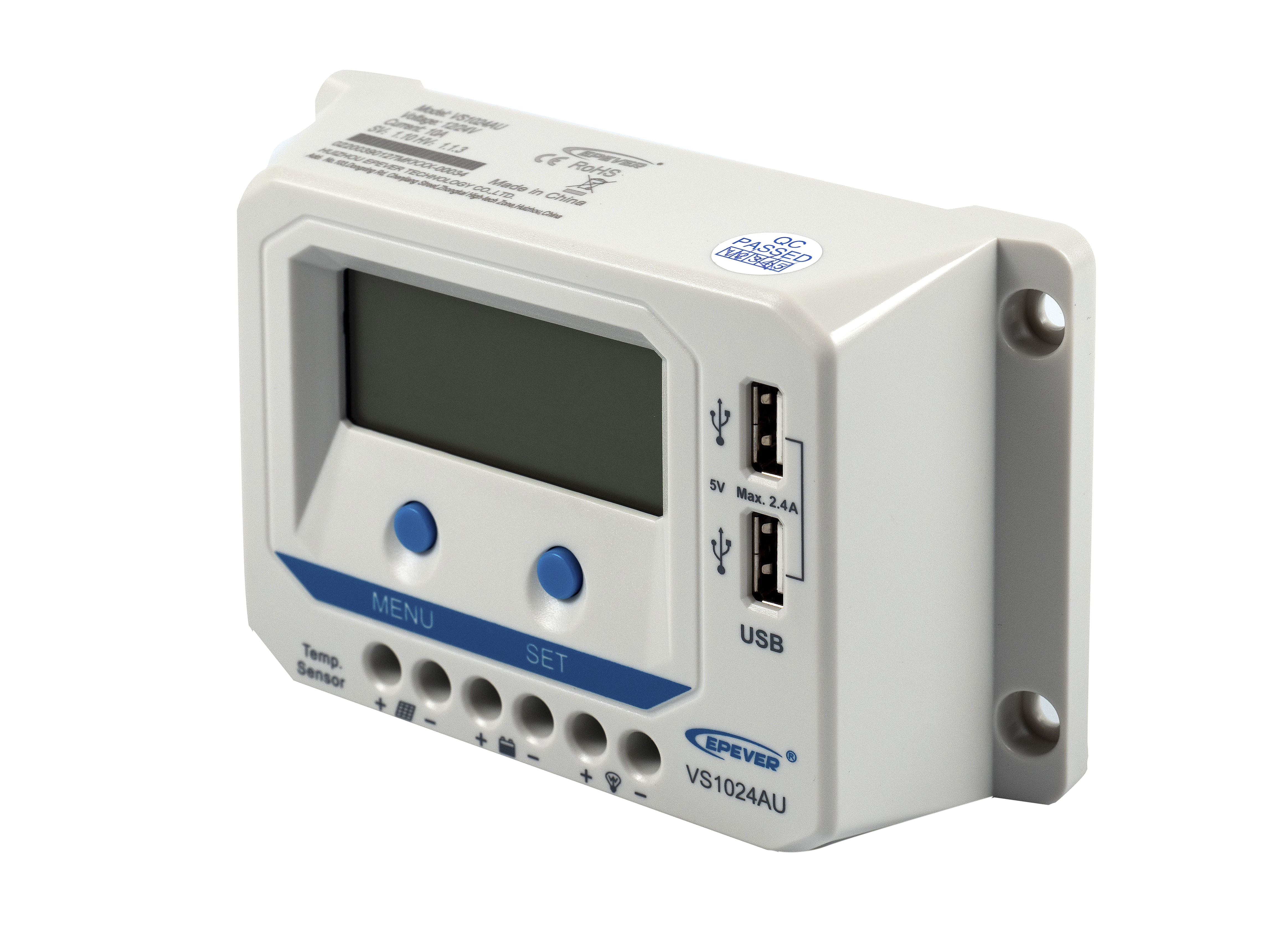 Контроллер заряда VS1024AU имеет встроенный ЖК-дисплей и USB-порт. Предусмотрено